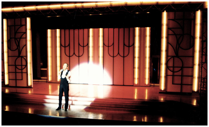 In 1987 I wrote a letter to Basil Soper asking if I could design his next summer show ... to my amazement he took a huge gamble on me and asked me to design what was to be one of the biggest summer shows in years. Russ Abbot was at the height of his TV career and this show was to be a no expense spared showcase of his live talents. This was my first Theater design job that directly led to BUDDY the Buddy Holly story. when producer Paul Elliott came to visit his friend Russ Abbot he saw my set and offered me Buddy on the spot.